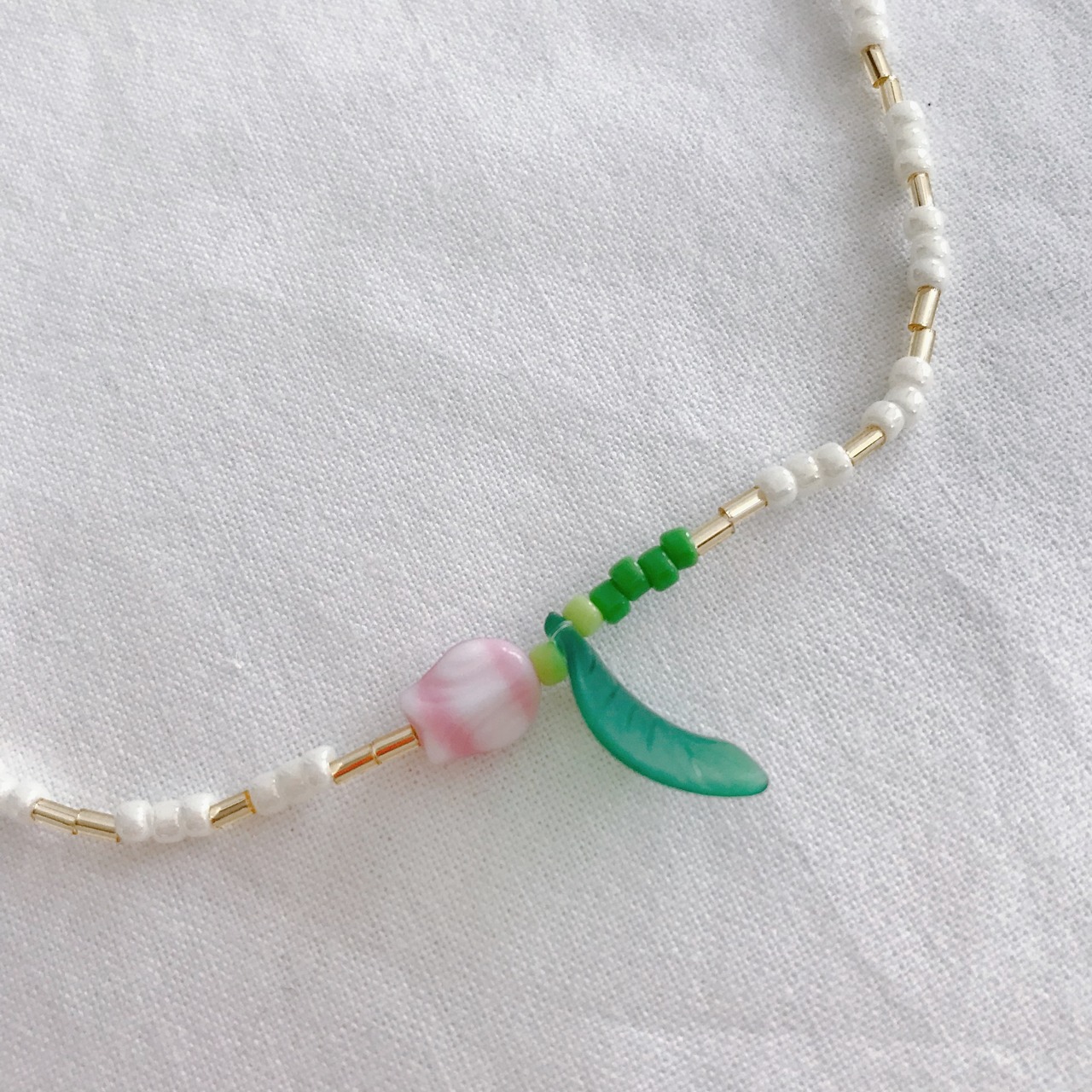 ビーズネックレスです☺︎ ピンクのチューリップがキュート^^ size...全長約33.5cm