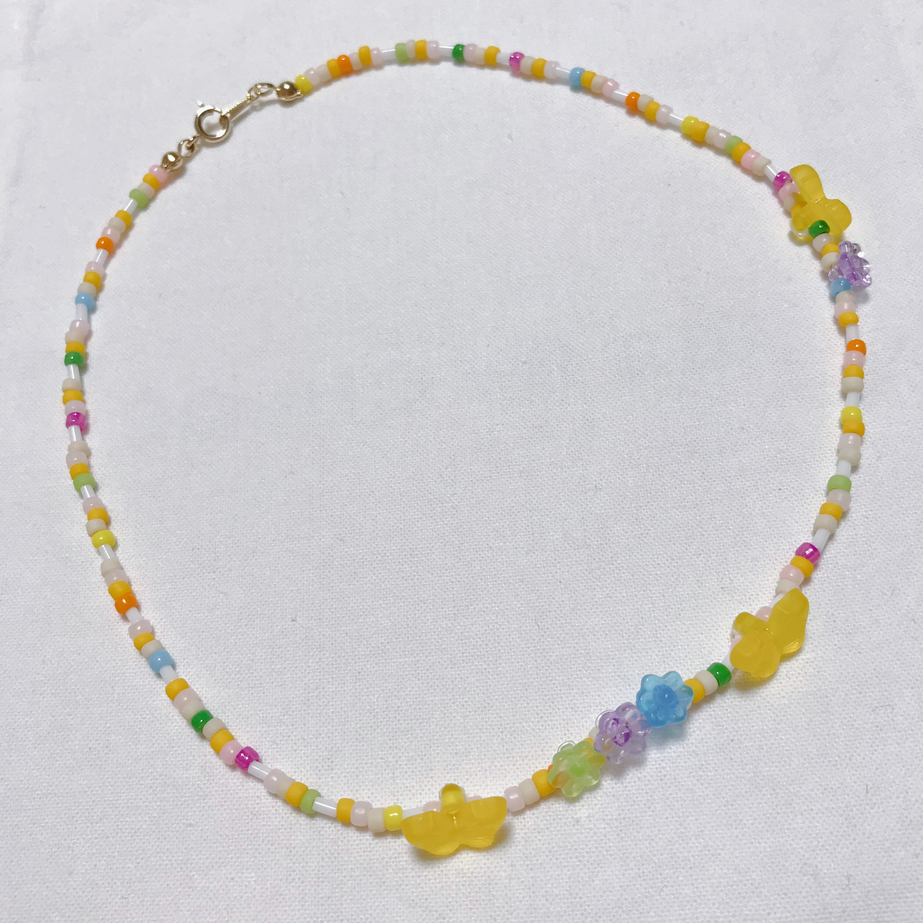 カラフルなビーズとちょうちょとお花が可愛いデザインです☺︎